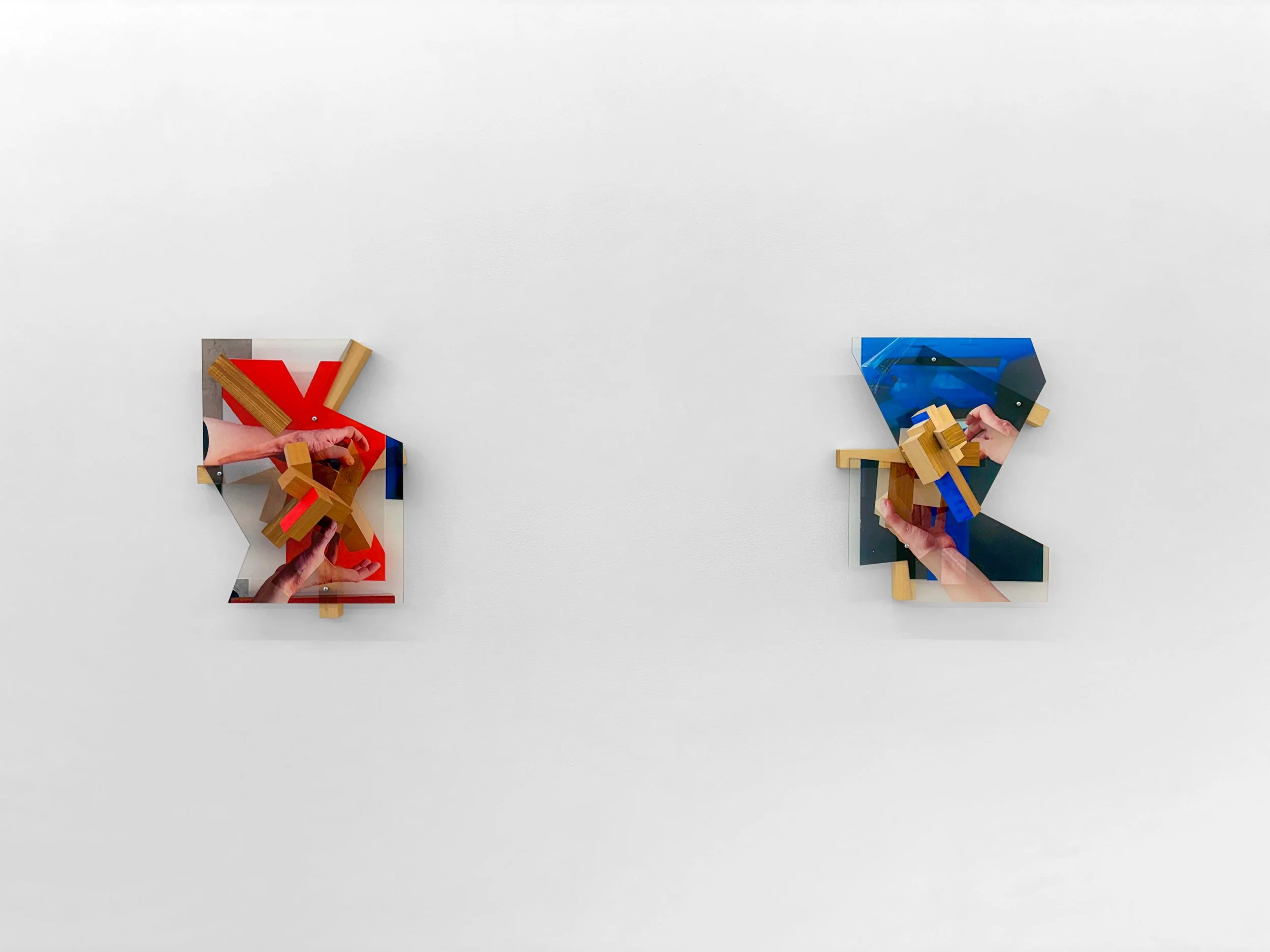 In an additional group of new works, Irazu combines photography and sculpture in a novel way to show the active process of creation. While building a sculpture in his studio Irazu photographed his hands during the act and then silkscreened those images onto acrylic before finally reassembling them into the sculptures in the exhibition. In these works, as in the entirety of Matter, Irazu both dramatizes and analyzes the mechanics of how his works are created, all while investigating the social construction of what is deemed real or virtual, actual or artificial.