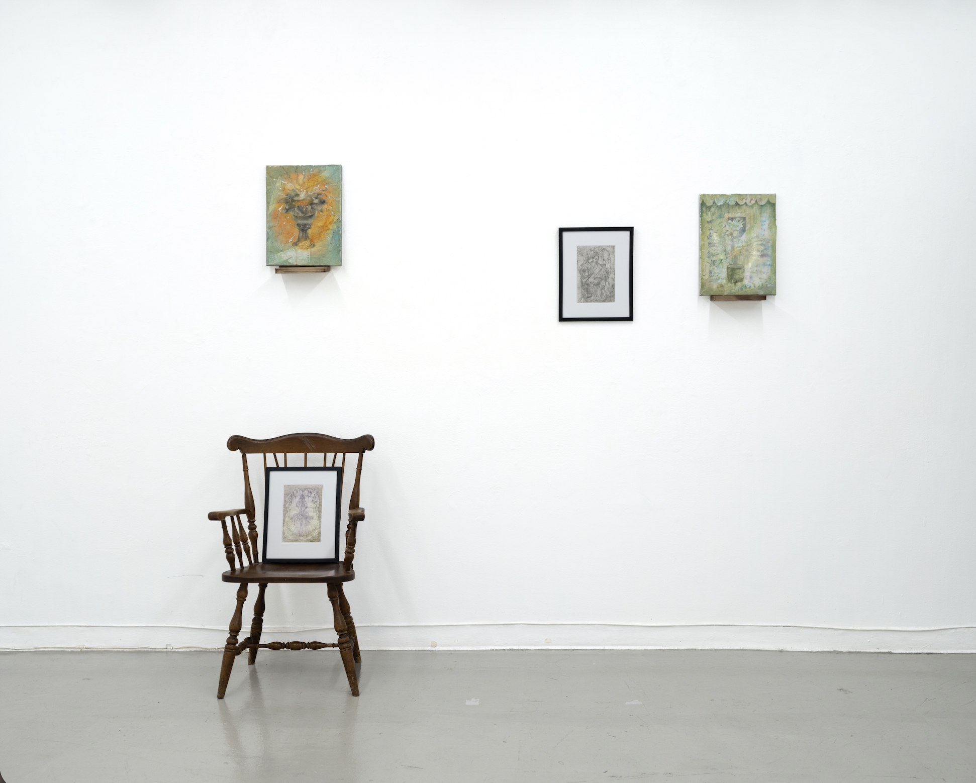 This exhibition immerses the audience in the inescapable intimacy of ‘gui’ through each artist’s subtle expressivity. The lure is here presented as a unique attention evoked by the spiritual within us—our entwined yearnings, our remorseful fantasies. The archaic exudes its aroma through the gestural plays on papers, carving boards, and the interweaving pigments. An ambience is all over the place. It nearly sustains a ritual, a silent prayer to the past, a lamentation for ancestors within the hush of old tales. ‘Gui’ is never alien to us. We move with its thrum.