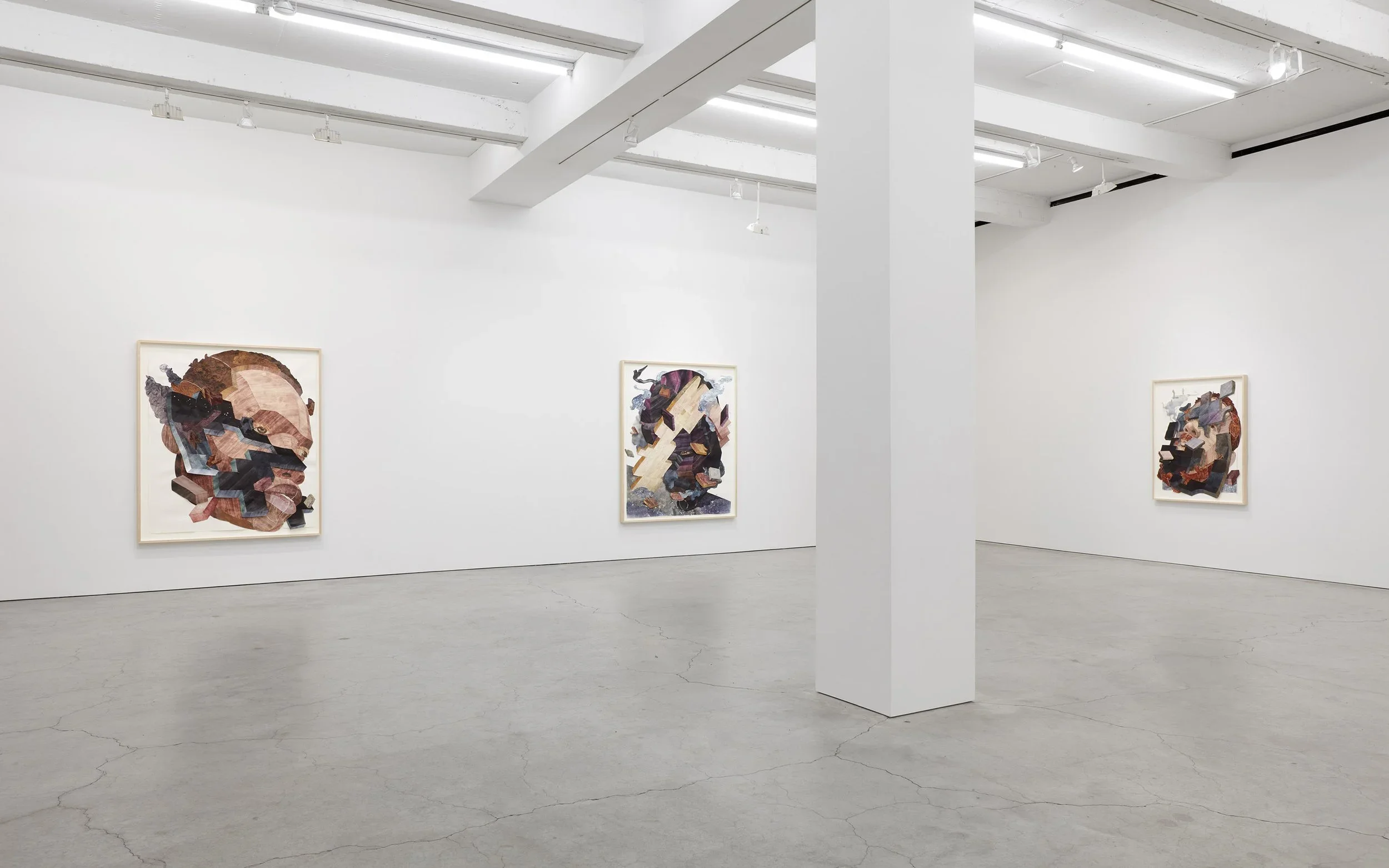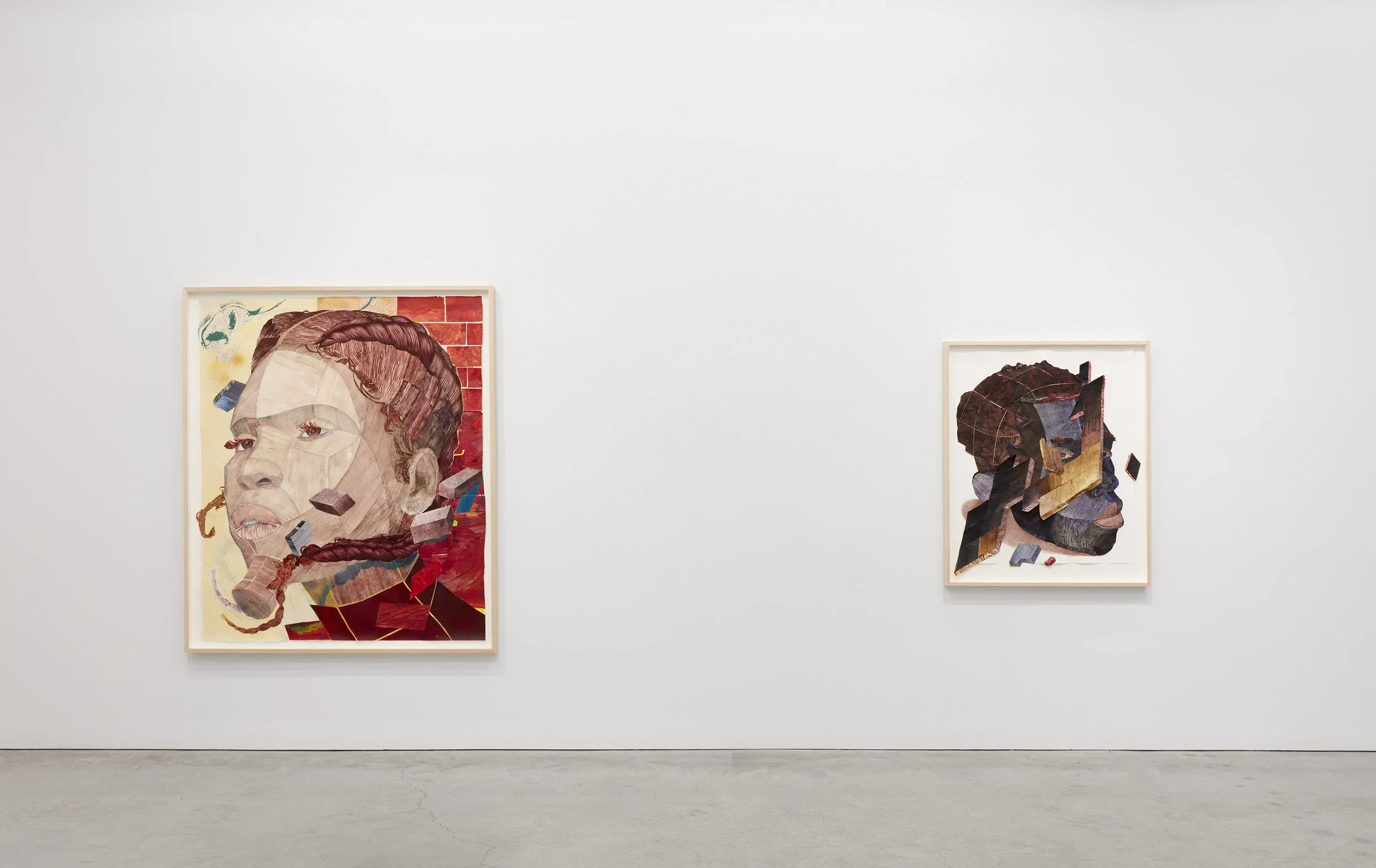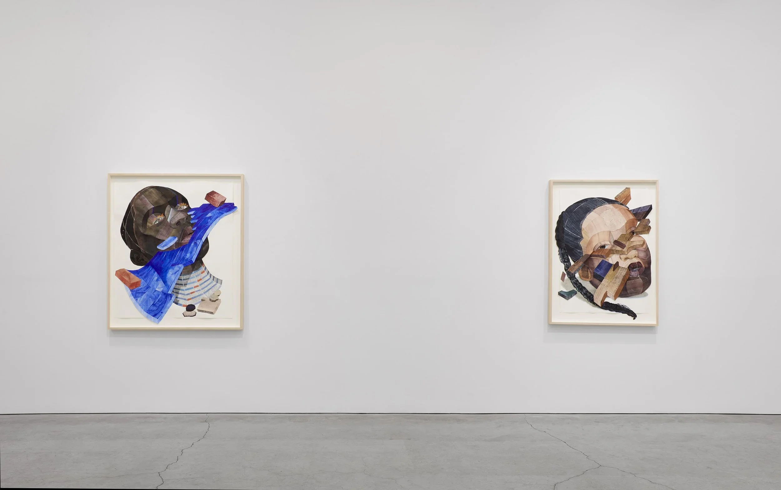In his practice, Yashua Klos explores how identity—particularly Black identity—is constructed as a means of survival, adaptation, and empowerment. Proposal for a Monument features a selection of recent large-scale woodblock print collages. In this body of work, Klos revisits imagery he first began exploring in 2015, of dimensional portrait busts intersected by grids, planes, wood, and concrete blocks. The integration of building materials and architectural elements into the collages alludes to the built environment, and specifically to the urban area of Klos’s hometown, Chicago—a city indelibly shaped by its signature street grid as well as by legacies of segregation and housing discrimination. The anonymized subjects of Klos’s collages are placed in constant negotiation with the material symbols of these unjust systems, entangled within their wreckage yet at times breaking through or reclaiming it as scaffolding to support the construction of something new.